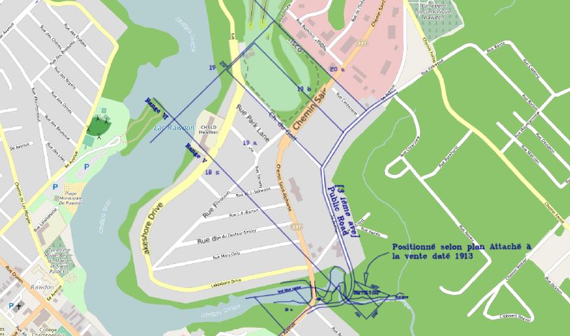 Work carried out by Yvon Laurin has made it possible to transpose the information extracted from the deed of sale onto a recent map of the municipality of Rawdon. Since 1973, Yvon has carried out numerous surveying projects in the Township and Village of Rawdon. A resident of Rawdon, he is very familiar with the municipality's territory and the area in question.